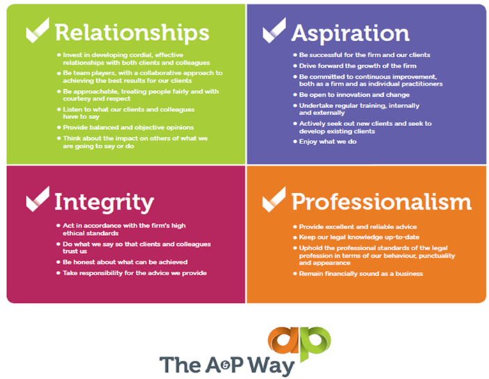 As a firm we proactively promote a positive working environment and “The A&P Way”